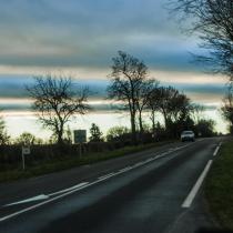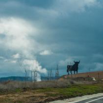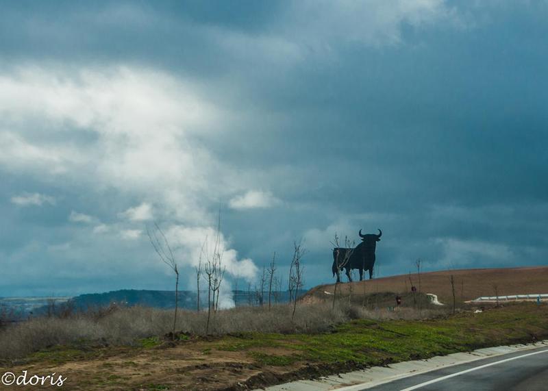 St.-Paul-les-Dax, ich bin nicht auf dem Stellplatz geblieben, es war mir zu einsam in einem Wäldchen und ganz alleine, ein Womo ist gekommen und nach einer halben Stunde wieder weggefahren. Ich fuhr los und suchte nach einem Parkplatz und fand ihn in einem kleinen Städtchen bei einem Supermarkt, auch alleine aber hell erleuchtet. Ich habe gut geschlafen, es war sehr ruhig und heute morgen um 7h hat es angefangen zu regnen, ich fuhr um 9h los, über die Autobahn nach Bayonne und es hat geregnet und geregnet. In Spanien wurde es noch schlimmer, auf der N1 nach Burgos hat es geschüttet und man war zeitweilig richtig in den Wolken. Das ging bis Vittoria Gasteiz, da war die Wolkendecke dann dramatisch aufgerissen, es gab einen Regenbogen. Die Sonne blinzelte manchmal vor und ab Mittag war der Regen vorbei, es wurde immer heller. Gleich war die vermisste Reisestimmung da und ich war happy. Bei Sonnenschein fuhr ich diese schöne gemütliche Strecke, sehr wenig Verkehr, das ist es doch was ich erhofft habe.